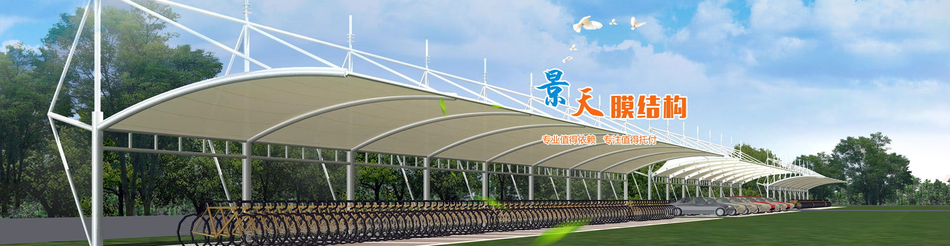 專注于充電樁車棚、自行車車棚、汽車車棚、膜結構體育看臺、膜結構景觀、污水池反吊膜、體育場館等工程